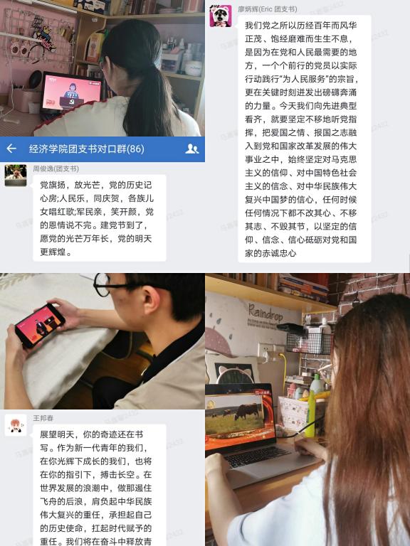 正值期末考试期间,同学们在教室、图书馆、宿舍采用分散学习的方式观看颁奖仪式,学习习近平总书记在“七一勋章”颁授仪式上的重要讲话。授勋仪式上,王继才“守岛就是守国”;张富清60余年“深藏功与名”;马毛姐在手臂中弹的情况下依然咬牙坚持,不畏枪林弹雨6次横渡长江;黄大发“水过不去、拿命来铺”的誓言;张桂梅扎根贫困地区40余年,创办全国第一所全免费女子高中,帮助1800多名贫困山区女孩圆梦大学等等,每一个事迹,都让我震撼和感动。29位获得者中,有4位是百岁老人。100年波澜壮阔,100年风雨征程。从革命、建设到改革,从救国、兴国到强国,他们用行动践行着初心与使命。
