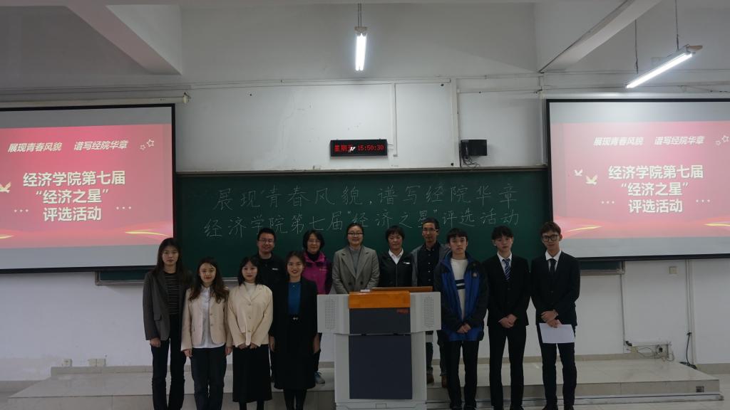 为了发挥优秀学子的榜样作用,引导大家向优看齐、推动学风建设,10月22日下午,beat365官方网站第七届“经济之星”评选活动于博智楼07422教室举行。应用经济系教师郭鹏飞博士,政治经济系教师吴正俊教授,贸易经济系教师刘瑜副教授,财政税收系系主任韩健博士以及辅导员张国培博士担任了此次评选活动的评委。