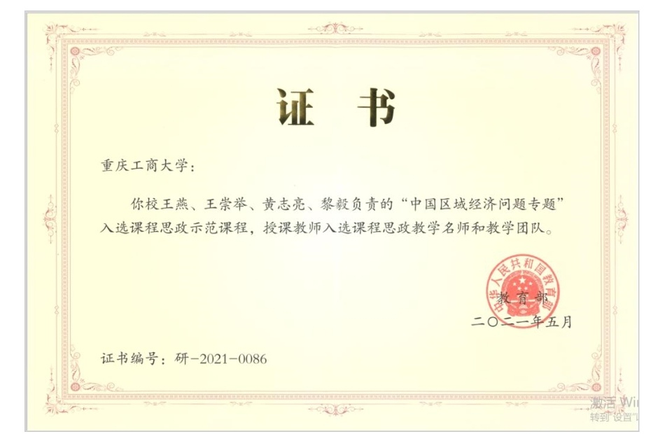 为深入贯彻落实习近平总书记关于教育的重要论述和全国教育大会精神,进一步强化教育大会精神,以及进一步强化课程思政建设主体责任,健全优质资源共享机制和平台建设,全面推进课程思政高质量建设。2021年5月,教育部公布了课程思政示范课程、教学名师和团队名单。beat365副书记、副院长王燕教授负责的第六批重庆市研究生优质课程《中国区域经济问题专题》入选教育部首批国家级课程思政示范课程,王燕及教学团队成员王崇举、黄志亮、黎毅入选教育部首批国家级课程思政教学名师和团队。