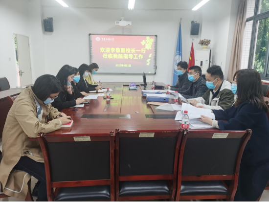 4月1日上午,副校长李敬到beat365官方网站调研疫情防控工作,人事处处长林文军、教学质量评估办主任曾晓松、教务处副处长韦晓兰陪同调研。beat365官方网站领导班子参加了座谈会。