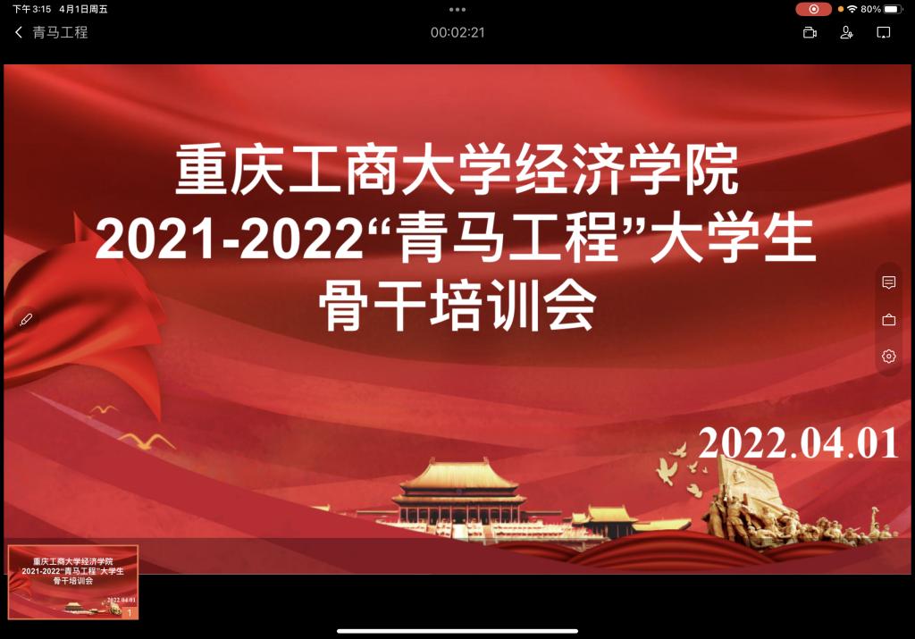 为深入贯彻习近平总书记重要讲话精神、落实团中央《“青年马克思主义者”培养工程实施纲要》文件精神,提升beat365学生干部政治素养、理论水平。4月1日,beat365官方网站分团委组织全院学生骨干在博智楼302教室进行了2021-2022学年第二学期青马工程培训之“学党史,明信念,担使命”思想教育。为遵循学校疫情防控规定,会议采取了线上线下同时召开的模式。培训会邀请了管理科学与工程学院封海粟老师、校团委基层组织建设部陈琛老师、以及马克思主义学院魏新欣博士担任培训教师,课程包含演讲口才提升、学生干部综合能力提升、学习理解“四史”历史中的重要问题等相关内容。