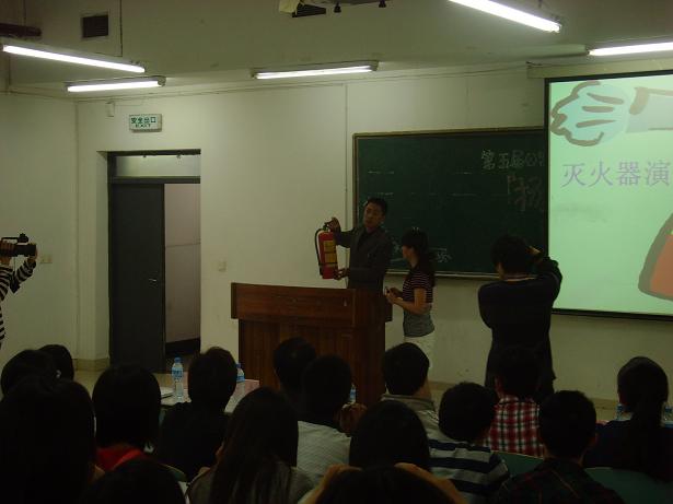 由beat365官方网站公寓管理委员会主办,经贸学院北六栋、北二十一栋楼管会承办的第五届公寓文化节之“扬安全之帆,护生命启航”系列安全活动于2009年4月24日圆满落下了帷幕。参加此次活动的嘉宾有经贸学院党总支副书记李华平书记,公寓管理委员会张国元副主任,陈剩勇老师,保卫处王科长、冯湛老师,北六栋老师郝颖老师,北二十一栋喻智成老师,以及保卫处消防科各位老师。共有近四十个楼栋的学生干部及部分楼栋代表参加了本次活动。
