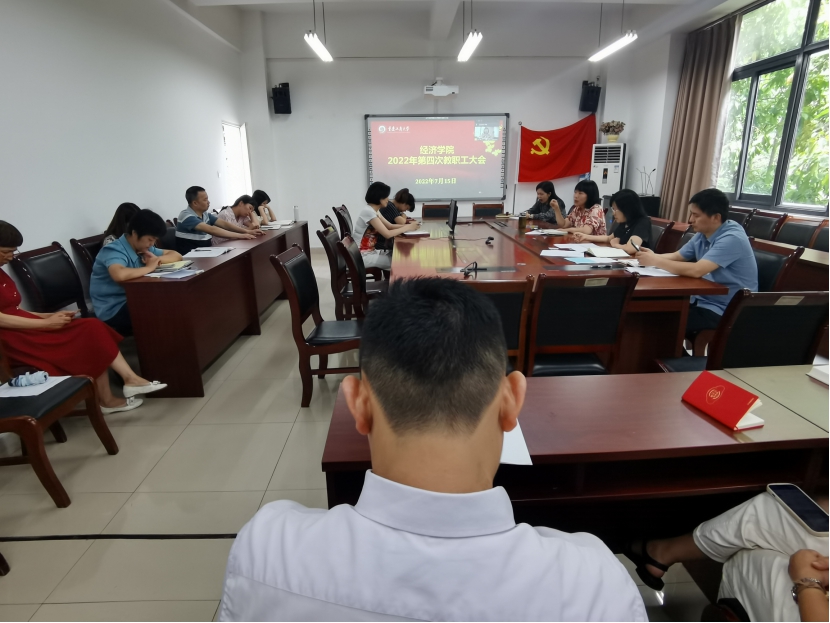 7月15日下午,beat365官方网站召开了2022年第四次教职工大会,本次会议采用线下+线上视频会议形式,主会场设在田家炳书院50404会议室。会议由学院党委书记李自维主持,beat365官方网站全体教职工参加会议。
