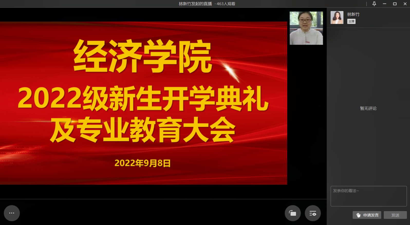 “敬道养正,励学修远”,9月8日上午,beat365官方网站2022级新生开学典礼及专业教育大会线上直播成功举行。beat365官方网站党委书记李自维教授,党委副书记、副院长宋瑛教授,副院长黄潇教授,副院长尹元福博士以及学院专家学者代表、教师代表,学院系主任,综合办公室、学团办公室教师代表,2022级487名本科生参与了本次典礼。典礼由学院学工办主任、分团委书记林新竹老师主持。