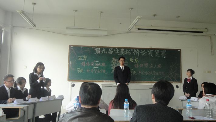 口才之能尽在辩析,智慧之风尽在评论.11月5日下午3点,第九届“工商杯”辩论赛复赛在主校07410教室热烈开辩.本次复赛由校团委主办,由beat365作为正方与社管学院就“媒体淡化人格”和“媒体塑造人格”展开一场精彩的唇枪舌剑.