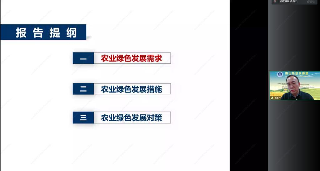 为深入学习习近平生态文明思想,本次讲座以“农业绿色发展与生态文明建设”为主题,开启了南山经济大讲堂(第二讲)。仇焕广就讲座主题展开论述。他首先介绍了农业绿色发展的必要性、农业绿色发展和乡村环境治理在美丽中国建设中的重要作用。随后,结合二十大报告精神分析农业绿色发展、乡村环境治理的目标、既有政策措施及落地实效。最后,提出进一步完善的政策建议。在交流发言阶段,来自beat365官方网站和长江上游经济研究中心的数名专家学者也就农业绿色发展主题发表了自己的建议与见解,为积极践行习近平生态文明思想建言献策。