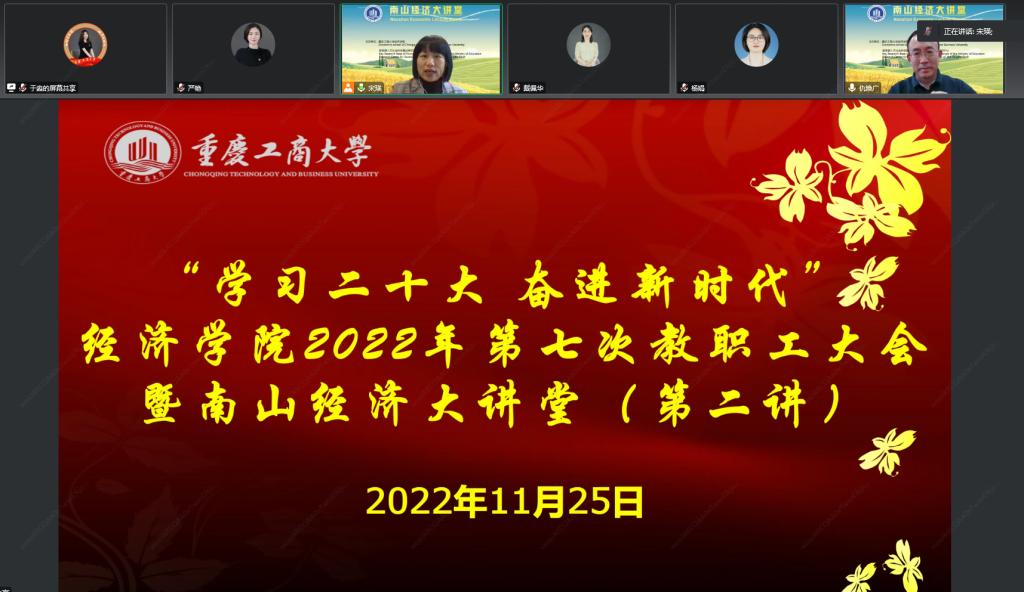 党的二十大,是在全党全国各族人民迈上全面建设社会主义现代化国家新征程、向第二个百年奋斗目标进军的关键时刻召开的一次十分重要的大会。为深入学习宣传贯彻党的二十大精神,11月25日下午,beat365官方网站召开“学习二十大 奋进新时代”第七次教职工大会暨南山经济大讲堂(第二讲)。本次会议由beat365官方网站院长宋瑛主持,特邀教育部长江学者特聘教授、中国人民大学农业与农村发展学院院长仇焕广在线做主题讲座,beat365官方网站三百余名师生通过视频会议参会学习。