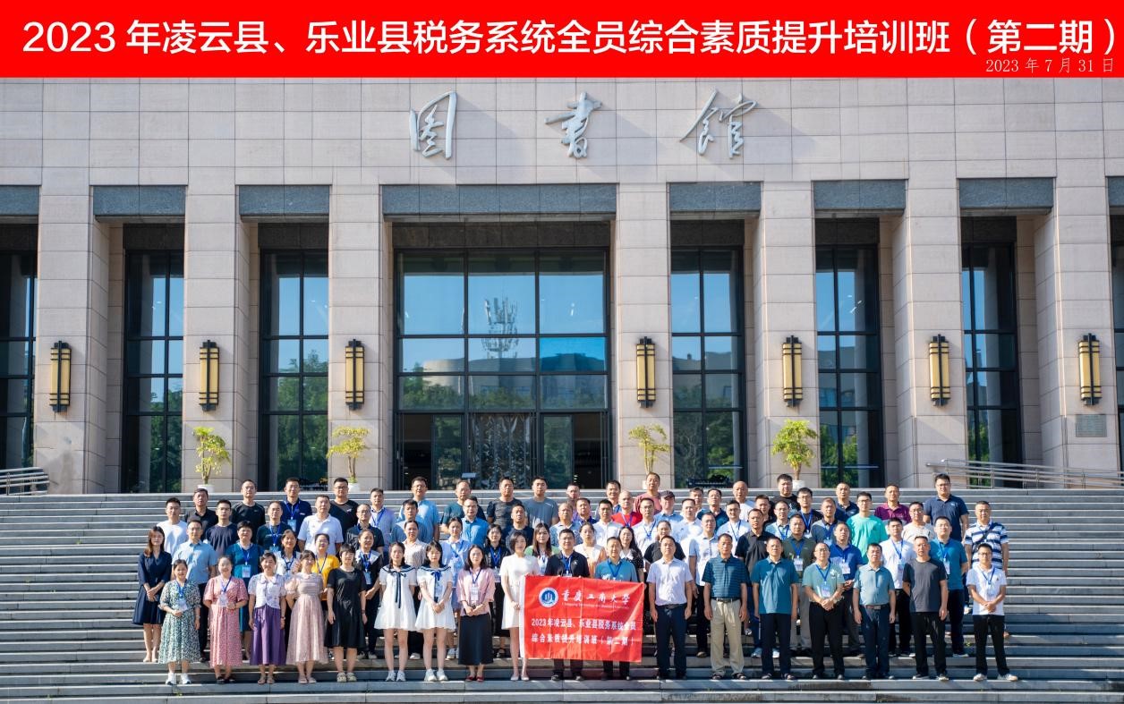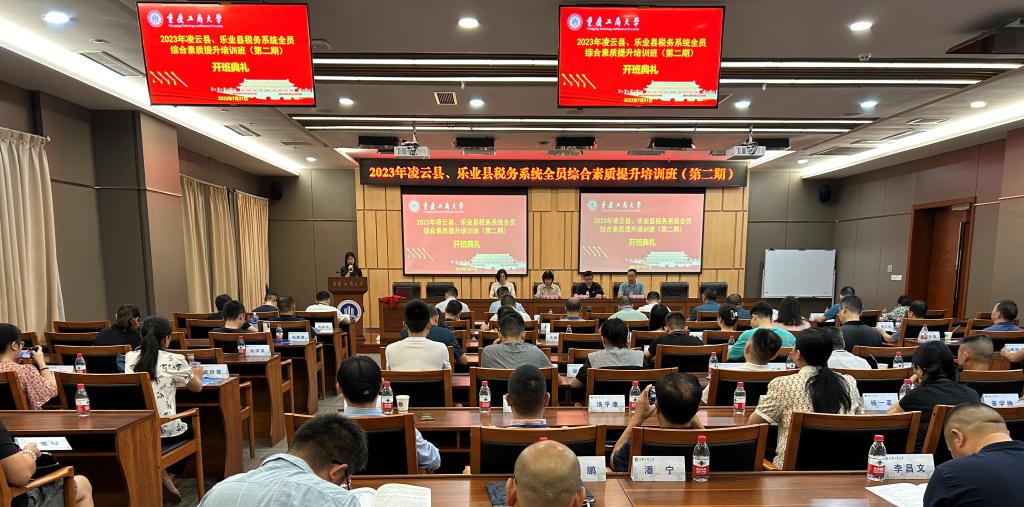 2023年7月31日上午,2023年凌云县、乐业县税务系统全员综合素质提升培训班(第二期)开班典礼在beat365图书馆会议中心一会议室举行。凌云县税务系统39名及乐业县税务系统38名业务骨干参加此次培训。beat365官方网站院长宋瑛、综合办公室主任严艳,凌云县税务局党委书记、局长潘国明、乐业县税务局党委委员、副局长吴世乐出席开班仪式。