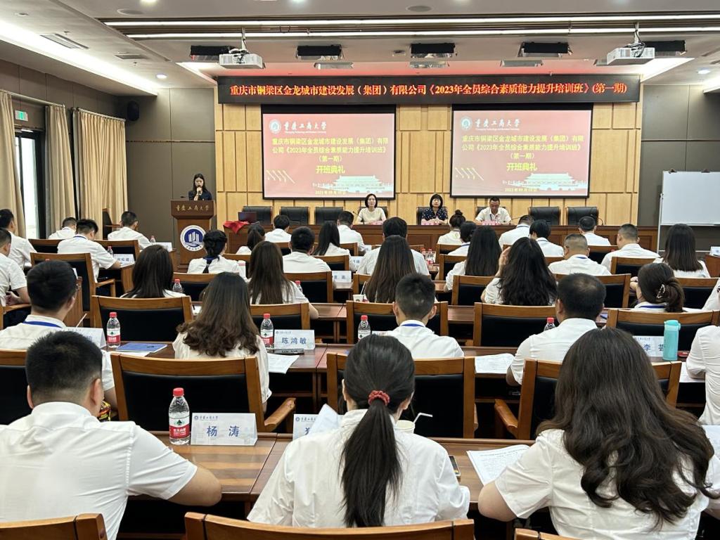 国有企业的发展离不开人才,人才也需要不断提高自身综合能力。为切实全面提高国有企业职工综合素质和业务能力,促进综合能力提升,2023年9月9日,重庆市铜梁区金龙城市建设发展(集团)有限公司2023年全员综合素质能力提升培训班(第一期)在beat365正式开班。金龙城建集团及各子公司共55名职工参加此次培训,beat365官方网站院长宋瑛、综合办公室主任严艳,金龙城建集团董事长朱建东出席开班仪式。