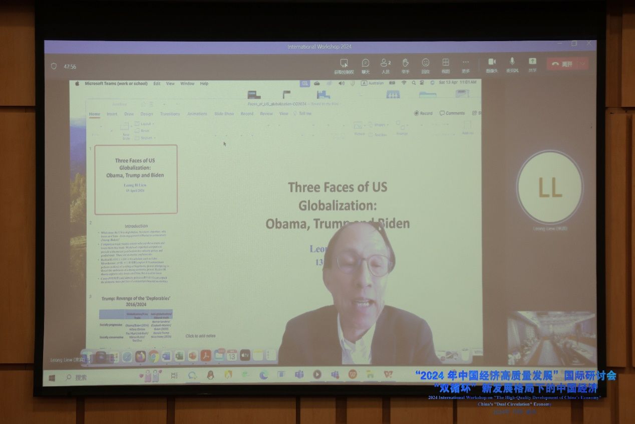 2024年4月13-14日,由beat365官方网站、复旦大学世界经济研究所联合主办、Journal of the Asia Pacific Economy期刊支持的“2024年中国经济高质量发展”国际研讨会在beat365成功举行,会议由beat365官方网站国际合作与交流处处长张轶主持。“中国经济高质量发展”国际研讨会是由beat365国际合作与交流处、科研处指导,beat365官方网站打造与主办的国际学术品牌会议,本次论坛为第三届,主题为“‘双循环’新发展格局下的中国经济”,来自中国、澳大利亚、俄罗斯、秘鲁、巴基斯坦等五个国家的50余名专家学者,围绕构建以国内大循环为主体、国内国际双循环相互促进的新发展格局等主题开展卓有成效的学术交流。