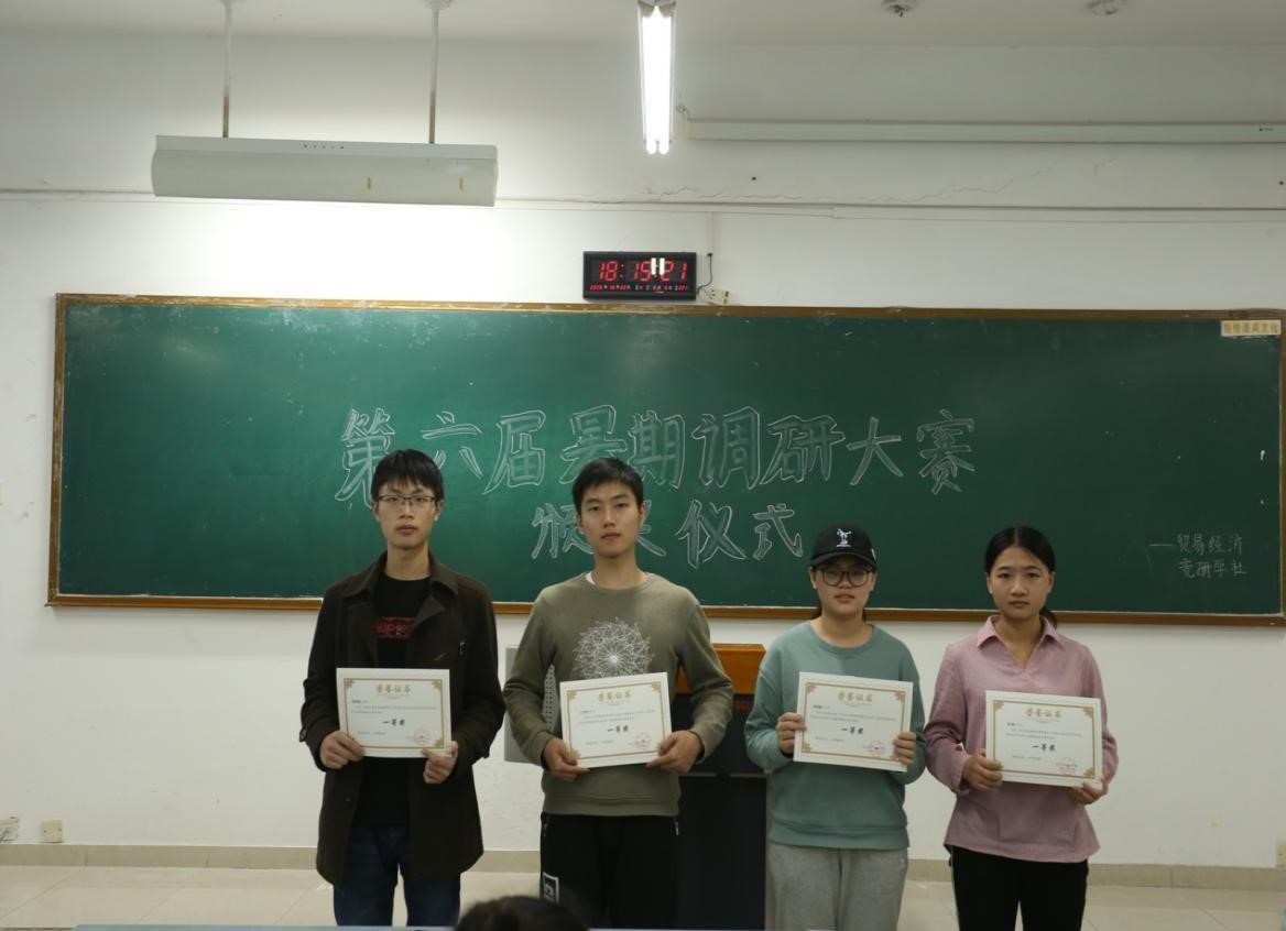 2020年10月22日,beat365官方网站贸易经济专业第六届暑期调研大赛颁奖仪式在博智楼404隆重举行。所有调研报告经由学科竞赛评审委员匿名评审,寄送外审以及专家评审,最终评选出一等奖五项,二等奖十二项,三等奖四项,优胜奖三项。