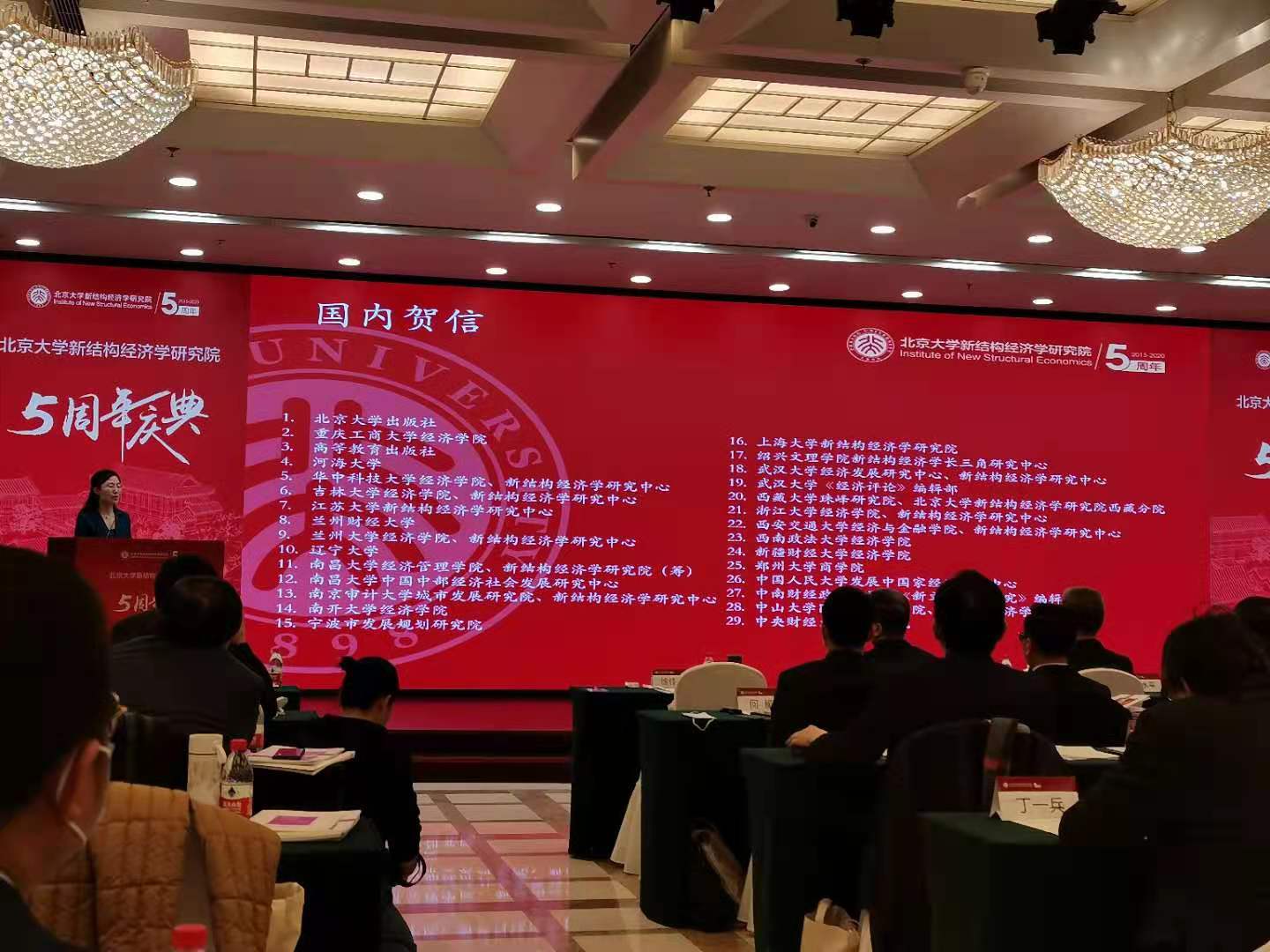 2020年12月12日,北京大学新结构经济学研究院成立五周年院庆活动在北京大学举办。beat365副院长黄潇、经济系主任李然,代表学院参加了该项活动。