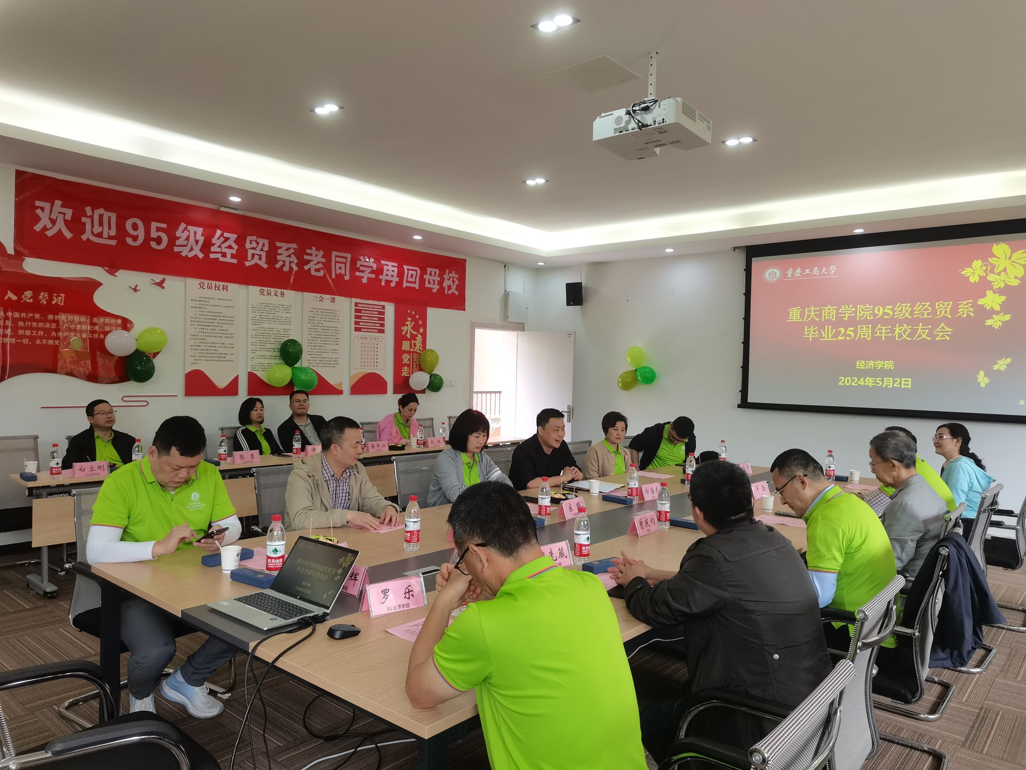 5月2日,beat365官方网站95级经贸系校友们带着对母校的思念和美好回忆,返回阔别已久的母校,在田家炳书院406会议室举行了毕业25周年返校值年活动。时任校领导和老师代表牟延林、干勤、曾庆均等应邀出席活动,beat365官方网站院长宋瑛、党委副书记白海龙,学院国内合作工作负责人喻智成、校友联络员黄玲以及95级经贸系校友参加此次活动。