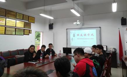 参会学生一一进行了自我介绍,并提出自己在学习、生活中遇到的问题和困难。大部分学生反映自制力差,缺少目标和动力是导致学习成绩差的主要原因。两位校友结合自身的经历,对学弟学妹们提出的困惑进行了解答,并给出了建议。他们讲到,树立信心、设定目标很重要,在学校期间要多和老师交流;打算工作或者有创业想法的同学,要多学习课外知识,积累实践经验;计划考研的同学,要合理规划时间,养成良好的作息习惯,有困难时可以借助外力的影响来监督自己。两位校友表示会用自己工资的10%设立奖学金,对学业上取得进步的学弟学妹给予奖励和鼓励。
