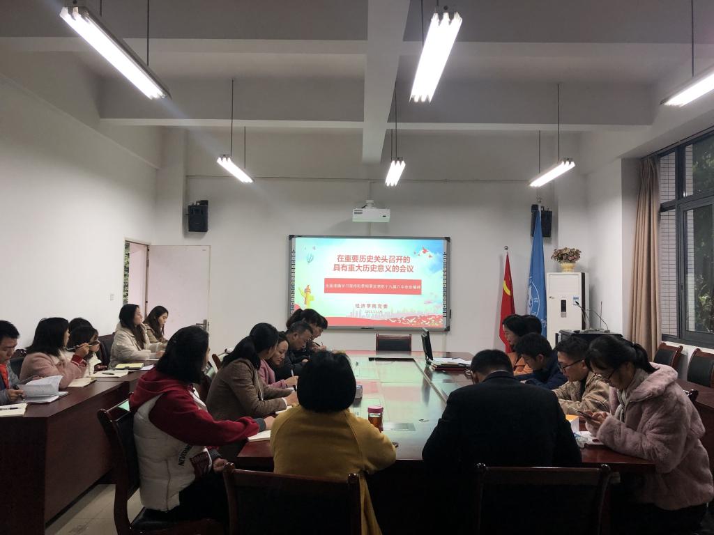 会上,李自维同志通过PPT的方式,围绕党的十九届六中全会审议通过的《中共中央关于党的百年奋斗重大成就和历史经验的决议》,从“三个‘历史决议’”“三个统一”“三个需要”“十三大成就” “三次历史性飞跃” “两个确立”“五大历史意义”“十大历史经验”等八个关键词出发,为大家深入解读党的十九届六中全会精神。她强调,党的十九届六中全会是在党的百年华诞之际召开的一次重要会议,承前启后,继往开来,发出了在新的历史交汇点接续奋斗、砥砺前进的伟大宣言,全会审议通过的《中共中央关于党的百年奋斗重大成就和历史经验的决议》,是继习近平总书记“七一”重要讲话之后,又一篇指引我们继往开来、砥砺奋进的纲领性文献。同时,李自维对学院党委如何深入开展学习宣讲贯彻十九届六中全会精神进行了布置和安排,一是要深入学习,统一思想,始终坚持办学正确政治方向,用我们党的光辉历史教育引导广大师生投身民族复兴的伟大进程,全院上下要立即行动起来,特别是十三个基层党支部及学生各班级,要迅速掀起学习宣传贯彻六中全会精神的热潮;二是要充分发挥好应用经济学重庆市一流学科和学院人才优势,要科学把握全会精神的内涵实质,全力做好全会精神学习宣传和研究阐释,积极服务党的理论创新工作;三是要全面贯彻党的教育方针,加快学院“双一流”建设,紧密结合学院、各系部等改革发展中的工作实际,深入抓好全会精神的贯彻落实,推动beat365官方网站改革发展事业迈上新台阶。