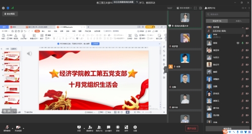 10月28日中午,beat365官方网站教工第五支部通过企业微信开展了十月月党组织生活及支部书记讲党课活动。此次活动主要包括三个环节,党组织生活会、教职工理论学习以及系部教学研讨会。活动由教工第五支部书记、政治经济系主任林黎主持。
