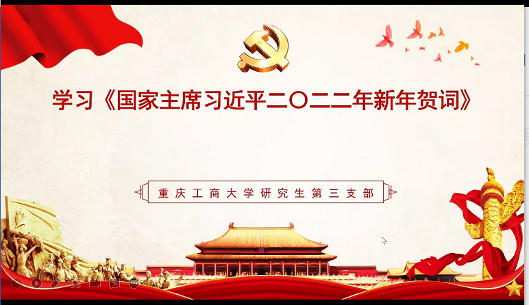 2022年1月25日下午,beat365官方网站研究生第三党支部在企业微信线上会议室开展了1月组织生活会,学习《国家主席习近平二0二二年新年贺词》。本次会议由支部书记薛晶月主持,研究生第三党支部全体党员参加。