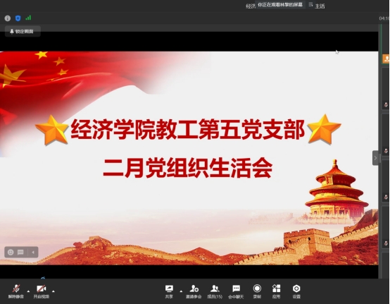 2月20日中午,beat365官方网站教工第五支部通过企业微信开展了二月党组织生活会。会议由教工第五支部书记、政治经济系主任林黎主持。
