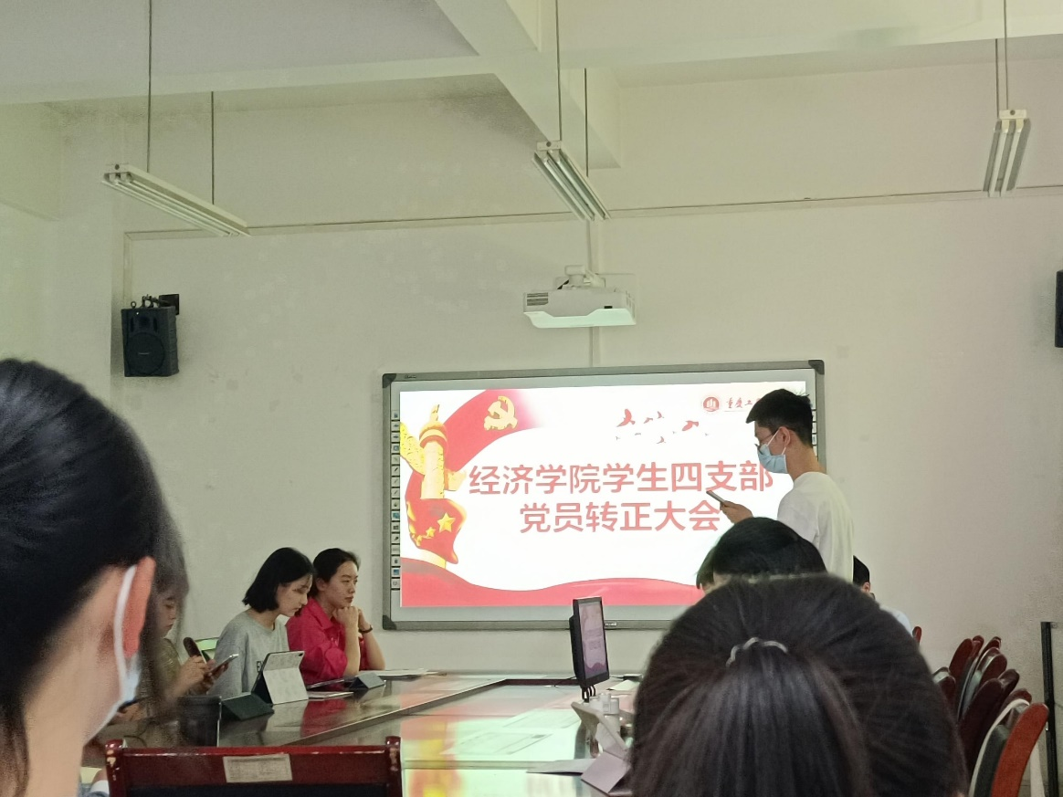 2023年5月29日星期五下午14:00,beat365官方网站学生第四党支部在田家炳404会议室召开了转正大会,大会主要讨论了是否同意陈建、方思影、郭瑞琦、王琼敏4名同志由预备党员转为中共正式党员,参与本次会议的有beat365官方网站第四党支部书记文理老师以及beat365官方网站四支部全体学生党员。