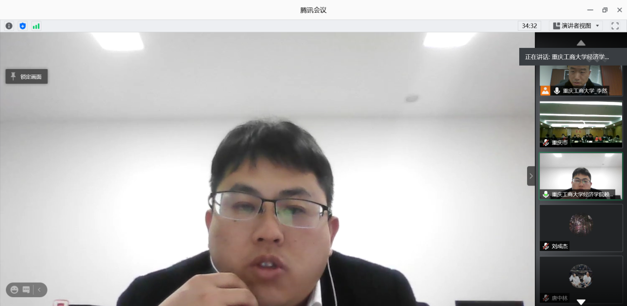 最后,雷菁委员和程卫民处长进行了总结发言。雷委员指出学校与政府机关开展支部联建活动,对于双方的党建工作具有重要意义,双方本着“共建支部、共享资源、共商活动、共同提高”的原则,重点围绕成渝经济圈建设,发挥各自组织优势和业务专长,通过共同开展学习教育、分析研究、聚智献策等活动,实现党的建设与业务工作深度融合。程卫民处长认为今天的视频连线是一次深化支部合作、检验联建成果的活动,是一次引智赋能聚力、互学互鉴互享的活动,更是一次助力川渝人社合作、助推成渝“经济圈”建设的活动。他感叹共建是跨界合作,开辟成渝经济圈建设新阵地;是引智聚力,助力川渝人社合作出新成果;是共建共筑,推动支部联建工作上新台阶。他对以后联建工作提了三点倡议,一是查漏补缺,加快完成共建任务,二是常联常新,深化支部联建工作,三是互助互建,推动双方事业发展。