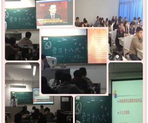 11月14日下午,11贸经1、2班以“学习十八大精神”为主题,于博智楼7104开展主题团组织生活:首先组织大家一起观看了十八大的闭幕式;然后以诗歌朗诵的形式,赞美党的十八大以来取得的辉煌成绩;最后大家踊跃发言,积极畅谈了自己对十八大精神的体会,体现了当代大学生对国家发展前途的关心及对祖国社会主义事业建设的积极关注。