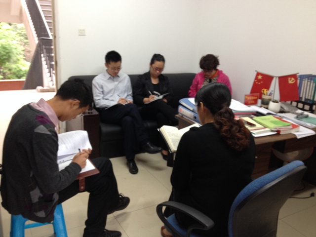 2013年9月26日下午,beat365官方网站党总支委员和各支部书记在田家炳书院414办公室,召开了党的群众路线教育实践活动工作学习会。