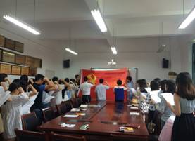 最后,学生党支部所有新入党的学生党员在鲜红的党旗下庄严入党宣誓,一定要率先垂范,以身作则,做新时代的优秀共产党员。
