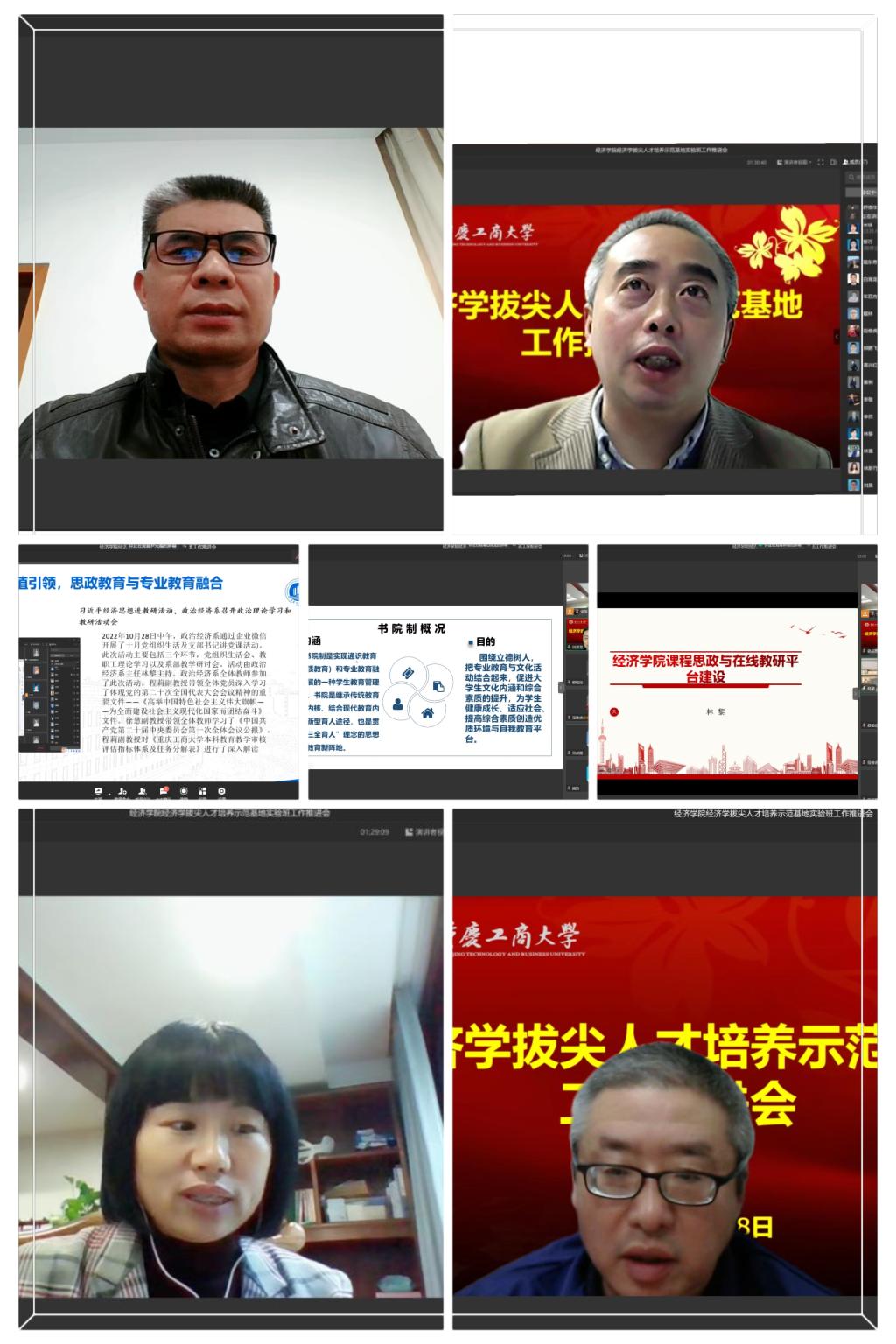 为扎实推进经济学拔尖人才培养示范基地建设,11月18日,beat365官方网站通过企业微信召开重庆市经济学拔尖人才培养示范基地工作推进会暨示范基地建设研讨会。会议由宋瑛院长主持,教务处骆东奇、学生处申卫东、经管实验中心庞楷、朱沙、采招中心阎晗等职能部门领导或同志、学院尹元福、白海龙、各系系主任、实验班班导师、合作公司负责人等参加会议。李敬副校长对经济学拔尖人才培养示范基地建设工作进行重要指导。