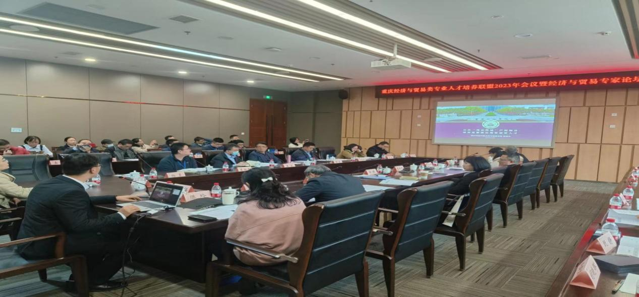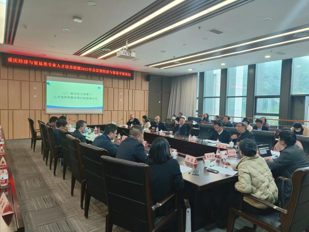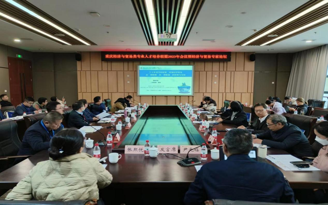 12月9日,由重庆经济与贸易类专业人才培养联盟主办,beat365官方网站承办,服务成渝地区双城经济战略的经济学专业建设虚拟教研室、国际市场开拓与贸易虚拟教研室协办的重庆经济与贸易类专业人才培养联盟2023年会议暨经管学院经贸专家论坛在beat365官方网站图书馆顺利举行。教育部高等学校经济学类专业教学指导委员会委员专家马正兵教授,教育部经济与贸易类教学指导委员会专家曾庆均教授、beat365官方网站大学beat365官方网站院长宋瑛教授、重庆科技学院法政与经贸学院杨贵中教授、四川外国语大学国际金融与贸易学院,数字经济与国际贸易研究中心主任许劲教授、各个高校相关专业教师与企业负责人参加了此次论坛。论坛由beat365官方网站副院长尹尹元福教授主持。