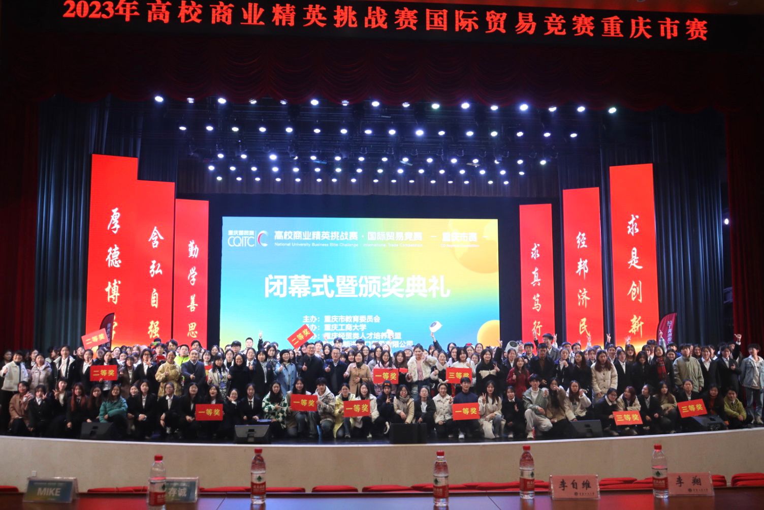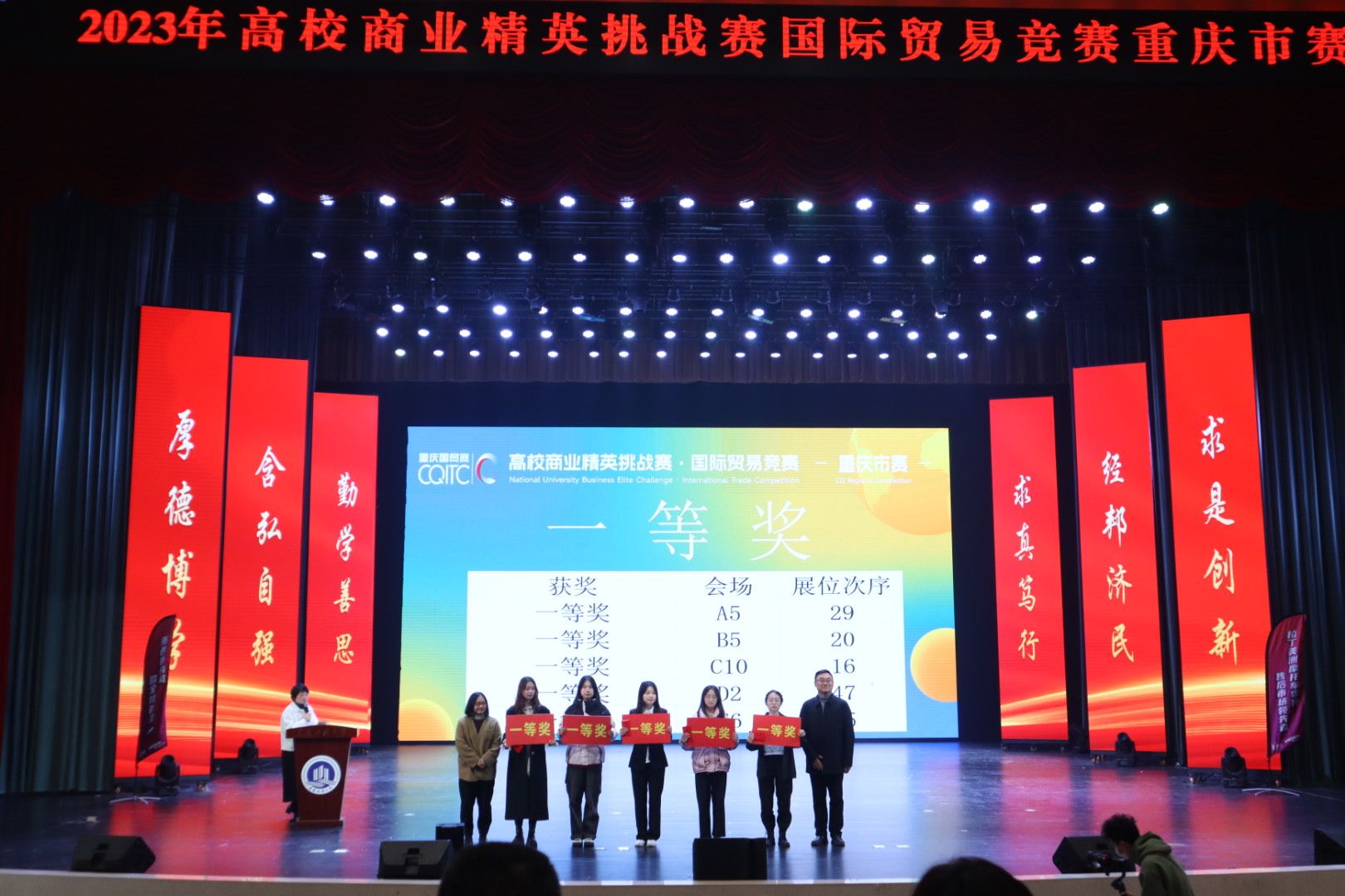 12月9日,由重庆市教育委员会主办,beat365承办,重庆经贸类人才培养联盟和重庆西朗进出口贸易有限公司协办的2023年高校商业精英挑战赛国际贸易竞赛重庆市赛在beat365南岸校区图书馆顺利举行。重庆市教育委员会高教处李翔调研员、beat365官方网站教务处副处长韦晓兰教授、beat365官方网站党委李自维书记、各评委代表以及全体参赛同学和指导老师参与闭幕式暨颁奖典礼。闭幕式暨颁奖典礼由beat365官方网站院长宋瑛教授主持。