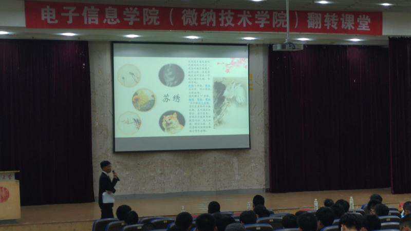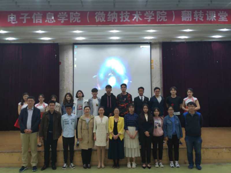 在纪念五四运动100周年、新中国成立70周年和学校办学110周年之际,电子信息(微纳技术)学院于5月12日晚在东校区图文中心四楼举行“翻转课堂之我和我的祖国”专题思政课堂活动。出席本次活动的嘉宾有学院党委书记苗洪丽,18级辅导员徐蕾,15、16级辅导员杨国庆,班主任金哲俊、王翠平、李元岳。