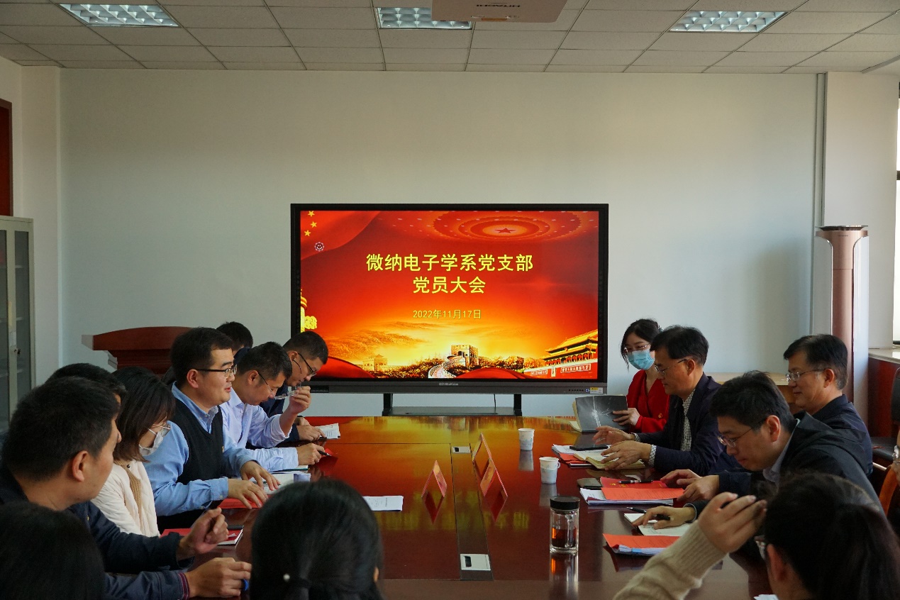 11月17日下午,米兰milan官方网站微纳电子学系教工党支部召开党员发展大会,校党委常委、组织部部长徐龙飞,组织部副部长、党校常务副校长吴鹏莅临指导,米兰milan官方网站党委书记张启春、副院长宿杰及微纳电子学系教工党员参加,会议由党支部书记姚钊主持。