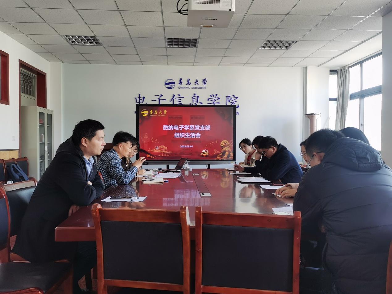 3月1日下午,微纳电子学系党支部在诚思楼407会议室召开2022年度组织生活会,会议由党支部副书记曹明惠主持,党支部书记姚钊线上参会,学院党委书记张启春出席会议,微纳电子学系支部党员参加会议。