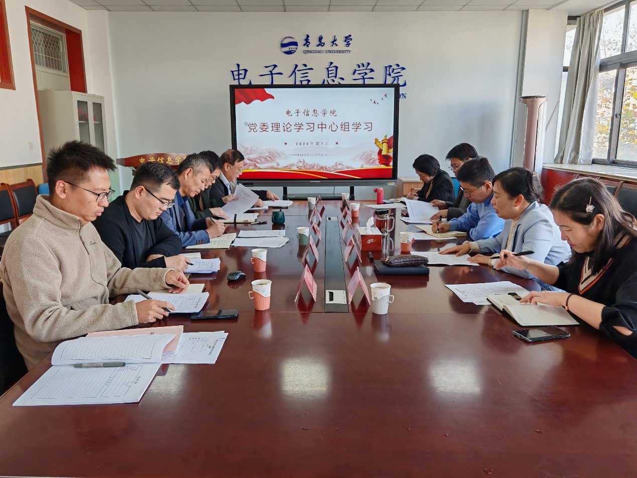 11月7日下午,学院在诚思楼407会议室举行第七次党委理论中心组扩大学习会,会议旨在深入学习贯彻党的二十届三中全会精神,强化党员干部理论武装,推动学院各项工作高质量发展。学校巡察组组长吴鹏一行3人列席会议,学院党委理论学习中心组成员参加了此次会议。会议由学院党委书记孙丽娜主持。