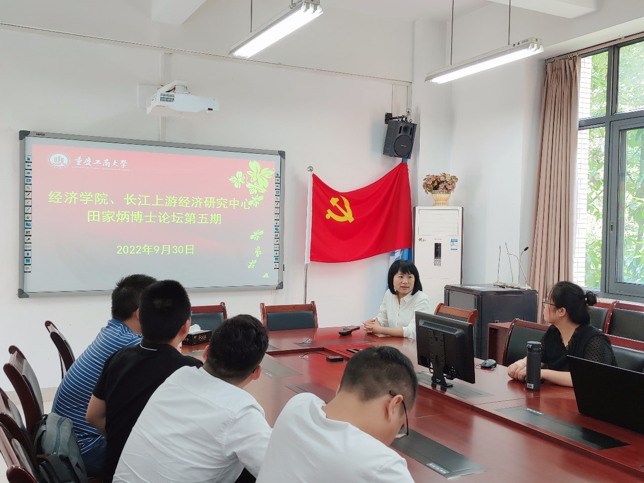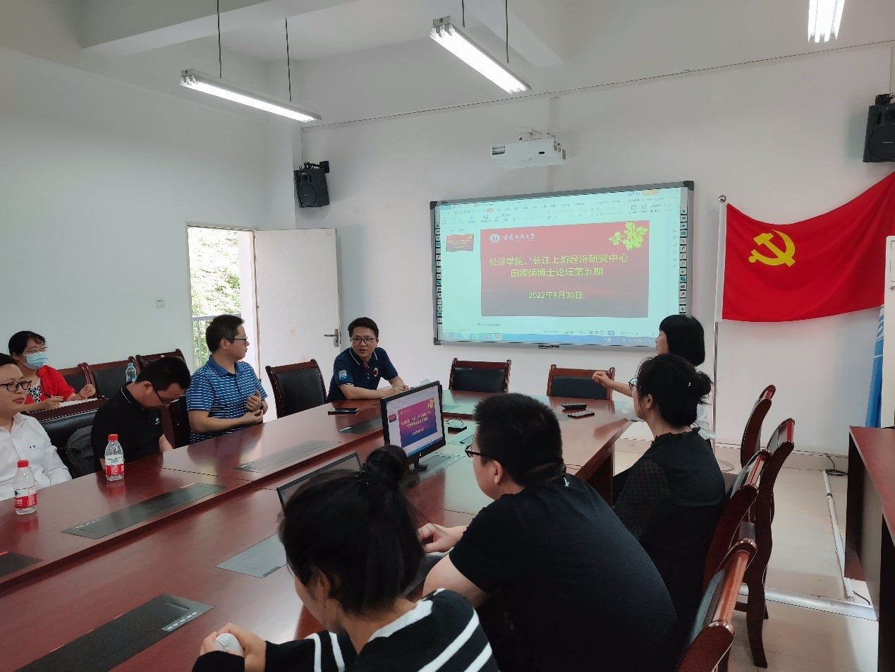2022年9月30日上午,beat365官方网站、长江上游经济研究中心于田家炳404会议室举办了第五次“田家炳博士论坛”,beat365官方网站副书记副院长宋瑛教授、副院长黄潇教授、青年博士教师和长江上游经济研究中心的博士研究生参加了本次论坛。青年教师王建业博士、雷俐博士分别进行了汇报发言。