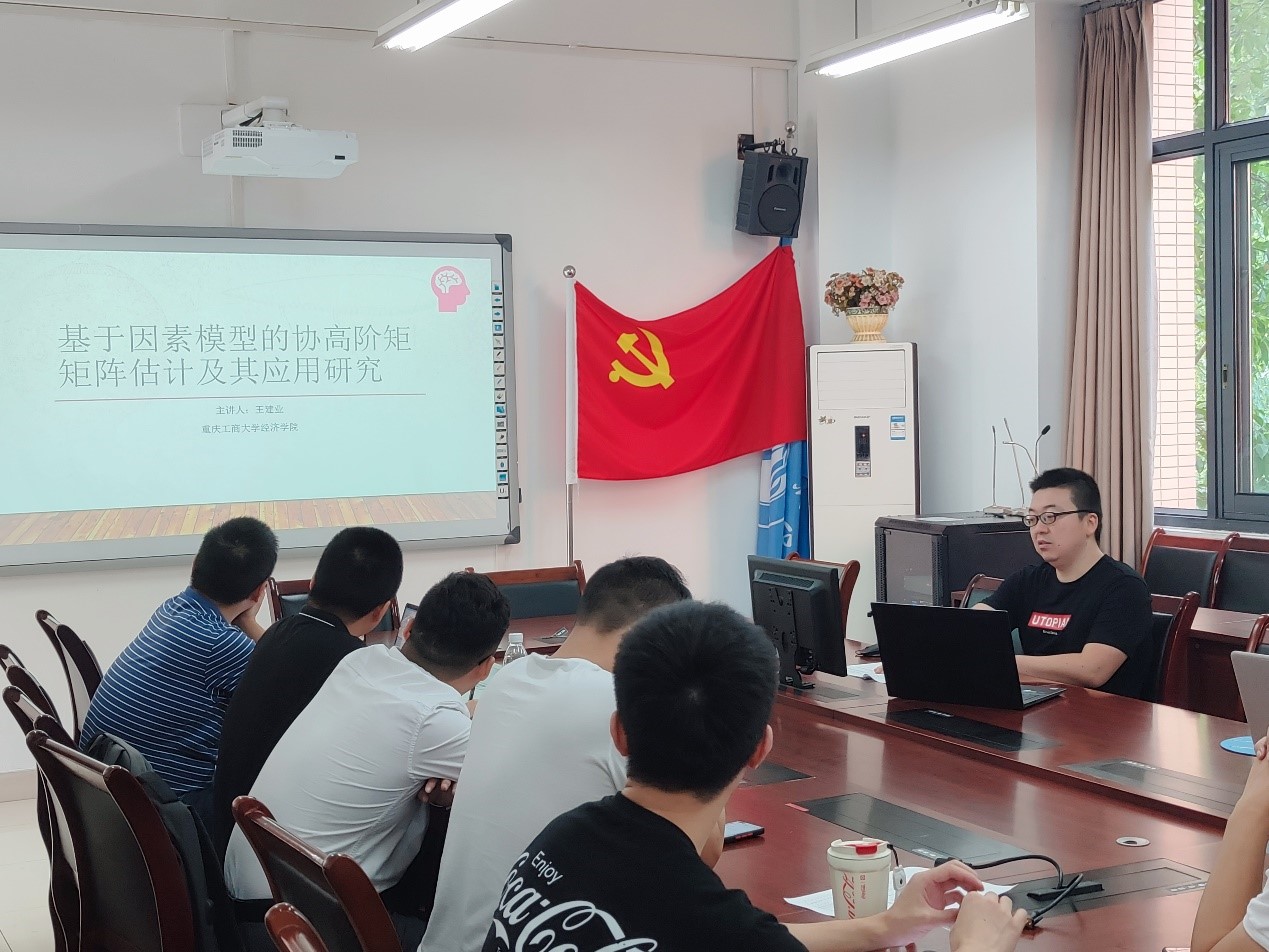 青年教师王建业博士做了《基于因素模型的协高阶矩矩阵估计及其应用研究》的学术报告。该项研究的前期成果已发表在《统计研究》期刊上,王建业博士认为在高阶矩投资组合中,使用传统样本估计方法会产生较高估计误差和模型设定误差。因此在多因素模型的基础上,给出一种改进的协高阶矩估计方法,分析了基于多因素模型压缩估计量的渐进一致性。蒙特卡洛模拟表明,多因素压缩估计量在有限样本中具有更小的平均绝对误差、根均方误差以及更高的平均绝对改进百分比,有效提高了协高阶矩矩阵估计的精度;即使在样本观测量比资产数目少时,估计的协高阶矩矩阵精度都会有较大提高。王建业博士基于2005年6月至2019年5月沪深300成分股的高阶矩投资组合实证发现,多因素压缩方法与其他估计方法相比,在年化收益率上可以获得4.7%~32.8%的提升,最大回撤能够下降3.7%~18.3%,表明使用多因素压缩估计方法构建的投资组合有更大的可能获得更多货币效用增益,以及面临亏损时,产生的最大亏损更小。该方法有助于金融机构或理性投资者在进行投资组合时减小投资损失,获得更好的投资回报。