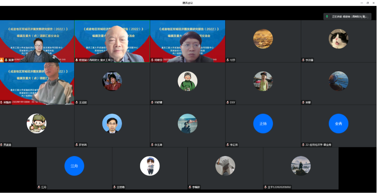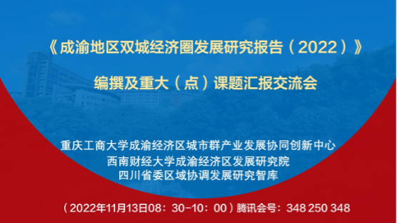 2022年11月13日,《成渝地区双城经济圈发展研究报告(2022)》编撰及重大(点)课题汇报交流会以在线会议方式举行。《成渝地区双城经济圈发展研究报告》是beat365成渝经济区城市群产业发展协同创新中心推出的标志性咨询成果,该报告以皮书形式按年出版,旨在对成渝地区双城经济圈的发展进行多方位的评估,并提出推进成渝地区双城经济圈高质量发展的政策建议。2021年度的《成渝地区双城经济圈发展研究报告》已由经济管理出版社正式出版。