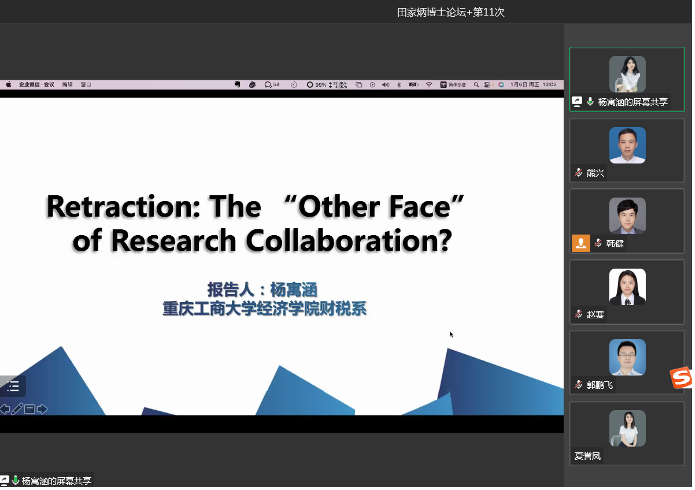 青年教师杨寓涵博士作了《Retraction: The “Other Face” of Research Collaboration?》的学术报告。杨寓涵博士发现在过去的二十年里,合作出版和撤稿的情况都在上升。基于此,杨寓涵博士以研究合作为重点,利用一个独特的数据集来研究导致撤稿概率的因素以及出版和撤稿之间的时间间隔。通过研究,杨寓涵博士发现,大多数被撤稿的论文是多作者的,而且重复撤稿者更容易有合作。但是合作本身并不增加产生有缺陷或欺诈性研究的可能性。这对所有的撤稿以及因伪造、编造和剽窃(FFP)而导致的撤稿都成立。杨寓涵博士还发现,作者来自精英大学的出版物被撤稿的可能性较小,这在因伪造、捏造和剽窃而被撤稿的情况下尤其如此。与其他国家相比,中国以最快的撤稿速度脱颖而出。