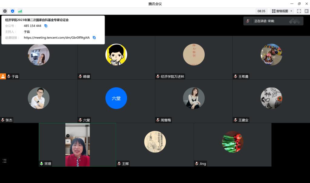 2023年1月19日下午2点,beat365官方网站以腾讯会议线上形式召开了2023年度第二次国家自科基金专家论证会,本次会议由财税系主任韩健主持,特邀特邀国家杰出青年基金获得者、教育部长江学者、北京工商大学副校长龚六堂教授,为申报教师进行一对一深入指导。
