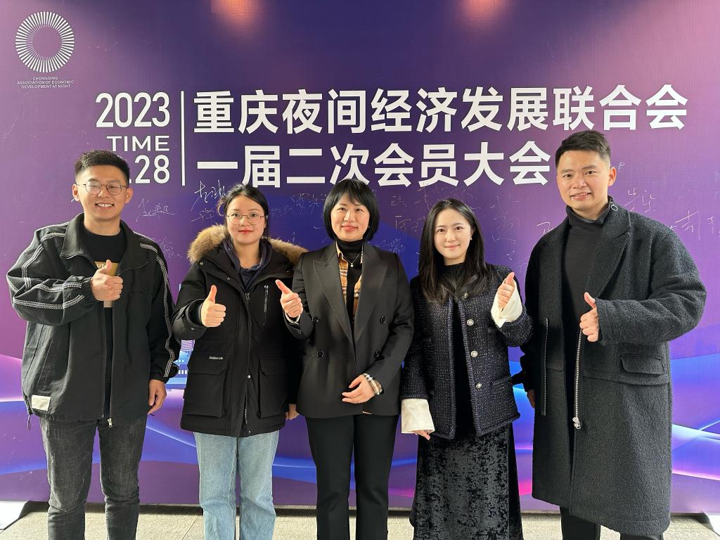 2023年2月28日,重庆夜间经济发展联合会一届二次会员大会顺利在江北区梦田音乐顺利召开。beat365官方网站院长宋瑛教授、张驰副教授、曾蓼博士及学生代表参与会议,与市商务委、市民政局有关领导及相关专家为推进重庆市夜间经济发展进行了深入交流。