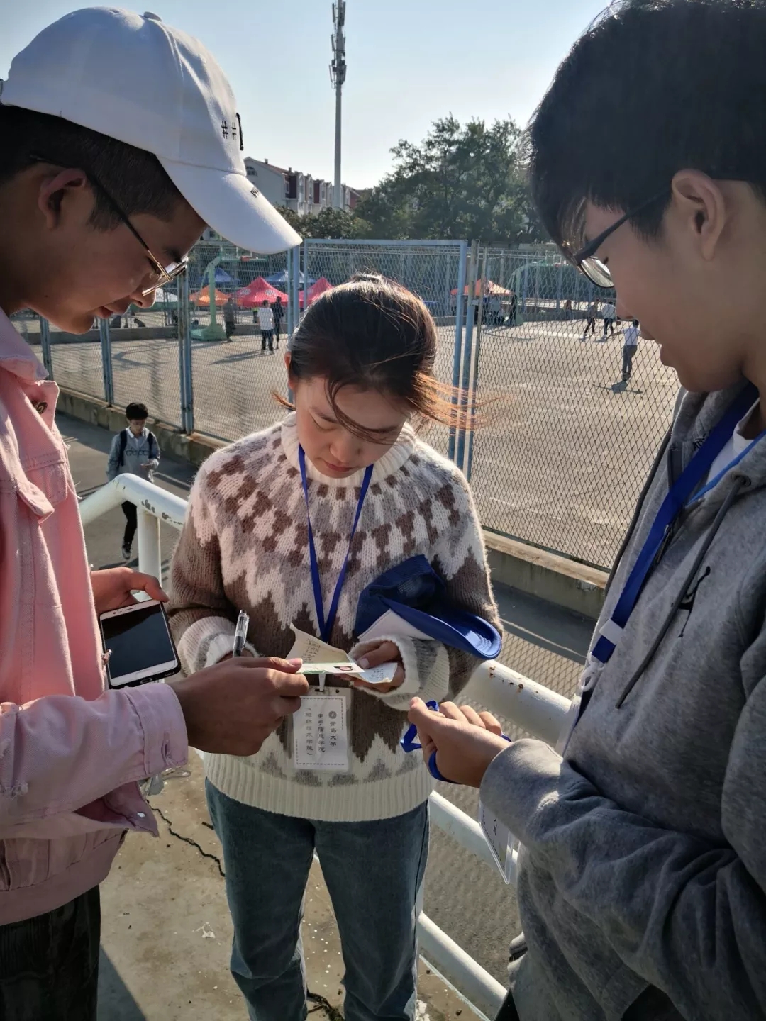 虽然这是运动会的第二天,但我们学院的同学们仍然热情高涨。摇旗助威,擂鼓呐喊,给在运动场上奋力拼搏的健儿们加油。艳阳高照,我们的心情也一样的灿烂。