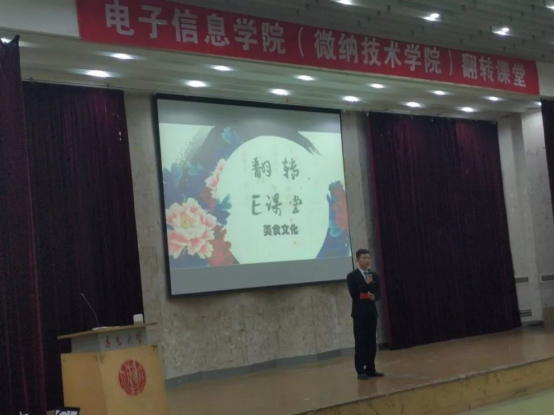 微风习习,天气正好。在纪念五四运动100周年、新中国成立70周年和学校办学110周年之际,电子信息(微纳技术)学院于5月12日晚六点二十分在图文中心四楼举行“翻转课堂之我和我的祖国”专题活动。出席本次活动的嘉宾有学院党委书记苗洪丽老师,18级辅导员徐蕾老师,15、16级辅导员杨国庆老师,电信二班班主任金哲俊老师,电信三班班主任王翠平老师和微纳一二班班主任李元月老师。