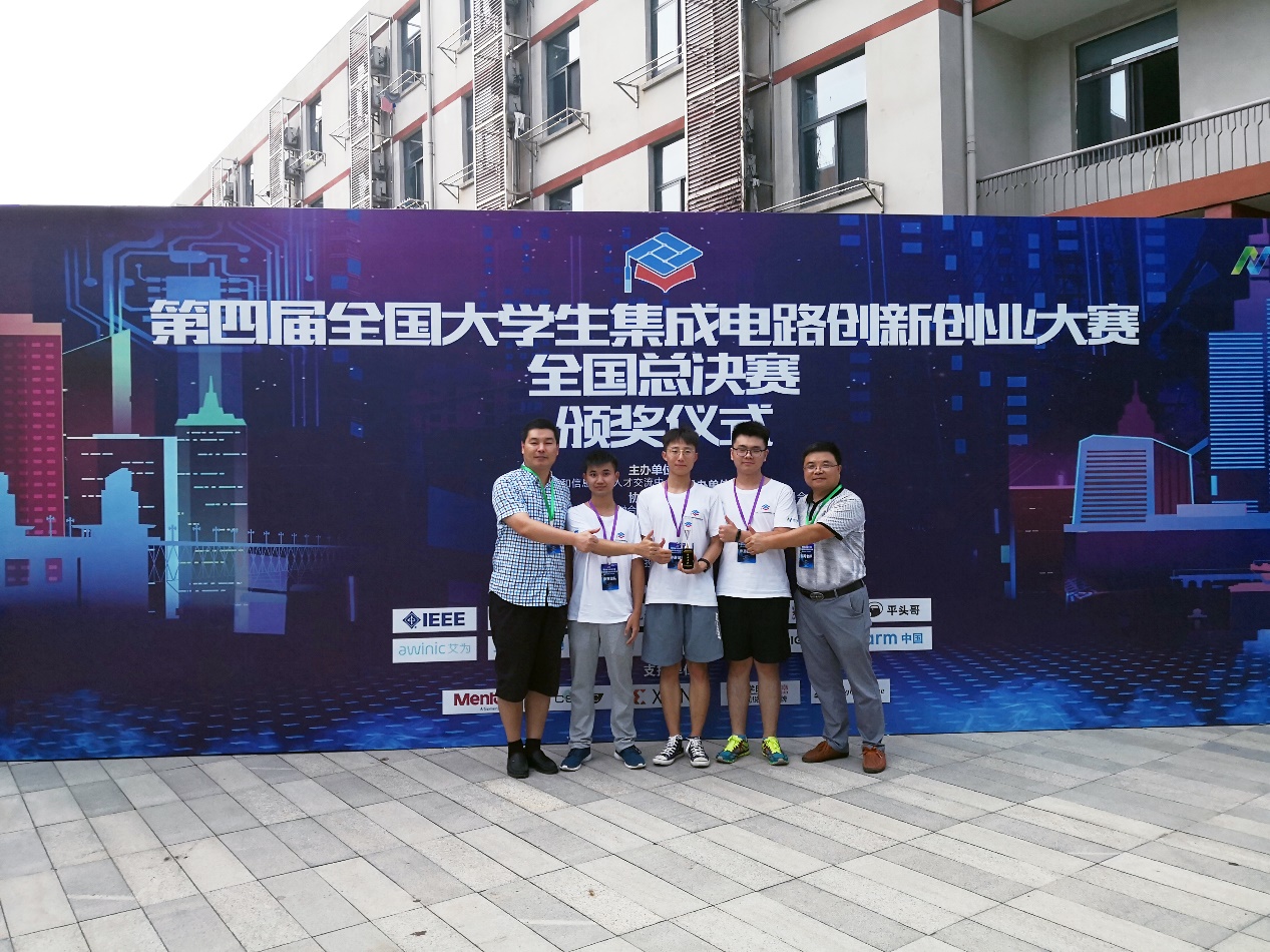 8月23日,第四届“全国大学生集成电路创新创业大赛”全国总决赛在南京顺利举行。在信诺达杯赛中,电子信息(微纳技术)学院孙中森和金哲俊老师带队指导的2017级电子信息工程专业张毅、全嘉民、金吉森组成的学生团队荣获国家特等奖(企业大奖),实现学院在该A类竞赛中荣获总成绩第一名的重大突破。