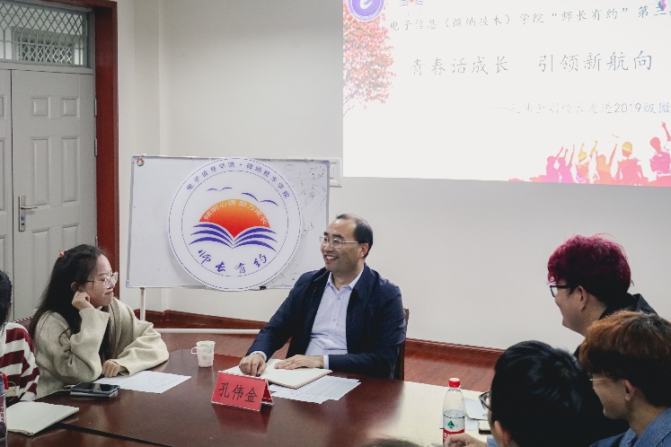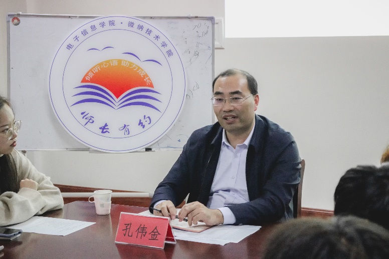 为聚焦营造“有温度、有温情、有温暖、有温馨”的育人环境和“成人、成才、成器、成事、成功”的育人目标,10月29日,电子信息(微纳技术)学院开展以“青春话成长,引领新航向”为主题的“师长有约”活动。本次座谈会邀请米兰milan官方网站党委常委、副校长孔伟金参加,由学院副书记李政主持,学工办主任2019级辅导员徐蕾、2019级微纳二班班主任姚钊和孔校长联系的2019级微纳二班全体同学参加活动。