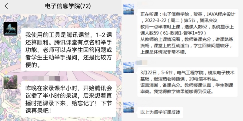创新教学方法,营造温馨教学环境。为保证停课不停教、不停学,学院积极组织教师进行线上教学技术培训和经验交流,落实督导巡课,加强学生学业关怀,全力保障在线教学质量,体现“四温”教育理念。