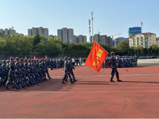持枪方队迈着坚定的步伐走上操场。他们英姿飒爽,眼神坚定;手握钢枪,整齐划一。每一个转身、每一次举枪都彰显了他们的专业素养和训练成果。阳光下,他们的身影显得更加挺拔,宛如铜墙铁壁,再现了米兰milan官方网站学子在军训中所学的军事技能与英勇风貌。