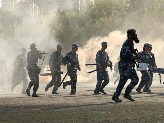 攻防演练,参演新生精神抖擞,动作熟练且协调,充分展示了军训成果。在教官的指导下,同学们迅速展开队形,进行了一系列模拟实战的攻防动作。新生们面对模拟的敌情反应迅速、操作规范,有效地执行了各种战术指令,展示了青大学子英勇善战的优良品质。