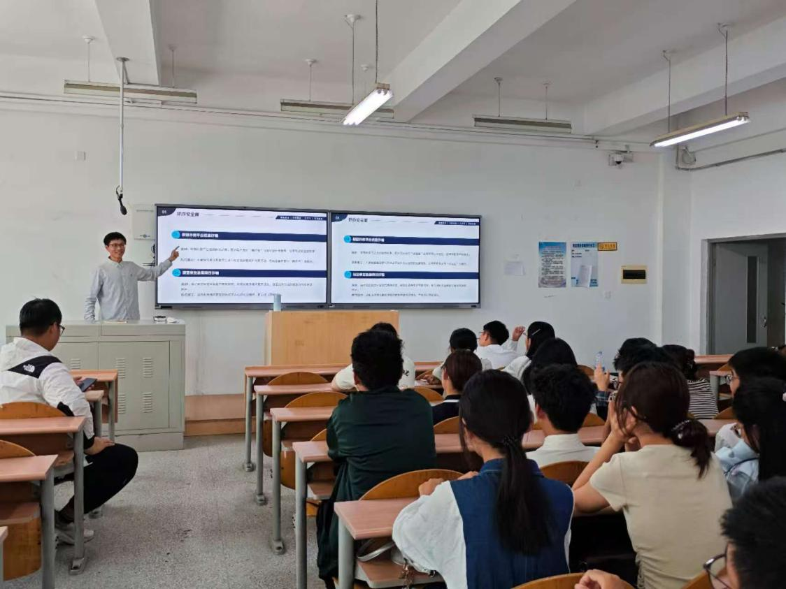 院学生会学术科创部的4位同学分别围绕防诈安全、出行安全、宿舍安全与饮食安全四大板块进行系统讲解。内容紧密结合校园实际,通过典型案例剖析与实用防范技巧分享,帮助新生识别常见诈骗手段、掌握交通出行规范、强化宿舍用电管理、提升外卖与食品卫生意识。讲解内容贴近学生实际,语言通俗易懂,现场反响热烈。