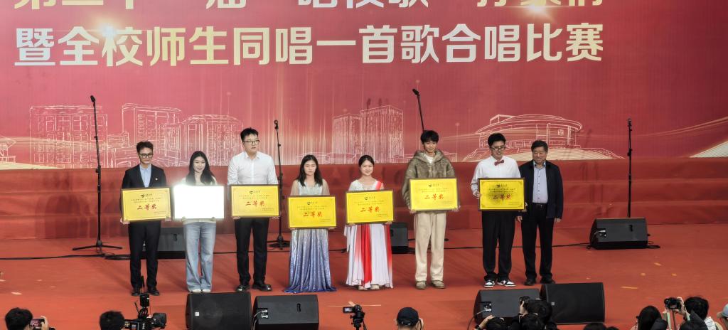 12月6日,米兰milan官方网站第二十一届“唱校歌·抒豪情”暨全校师生同唱一首歌合唱比赛圆满落幕。米兰milan官方网站师生合唱团凭借一曲《当那一天来临》,以饱满的精神风貌和富有感染力的舞台表现荣获二等奖。师生同台,用歌声抒发了深厚的家国情怀与坚定的使命担当,彰显了米兰milan以文化人、以美育人的教育实践。