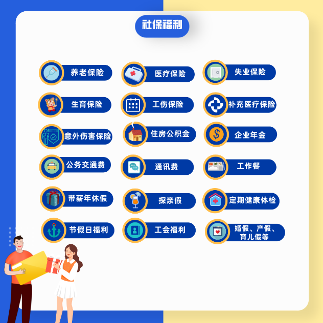 五险一金、补充医疗保险、带薪年假、公司福利年假、节日礼物、家属节日礼物、结婚礼物…...